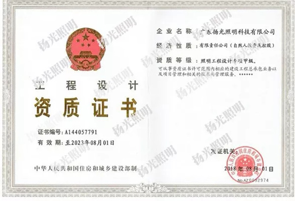 照明工程設(shè)計(jì)專項(xiàng)資質(zhì)甲級(jí),至此,公司已成為全國(guó)為數(shù)不多的城市及
