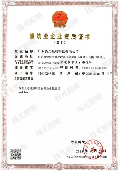 夜景照明行業(yè),堅(jiān)持誠(chéng)信經(jīng)營(yíng)、開(kāi)拓創(chuàng)新。在揚(yáng)光人的默默付出、不懈奮斗下,揚(yáng)光照明積累了豐富的項(xiàng)目管理經(jīng)驗(yàn),打造了一支一流的建設(shè)隊(duì)伍,培養(yǎng)了一批優(yōu)秀管理團(tuán)隊(duì),鑄就了諸多精品工程,此次“雙甲”資質(zhì)取得,將大大提升揚(yáng)光照明的綜合實(shí)力、竟?fàn)巸?yōu)勢(shì)和項(xiàng)目承接能力,為揚(yáng)光照明帶來(lái)更多的項(xiàng)目機(jī)會(huì)。
